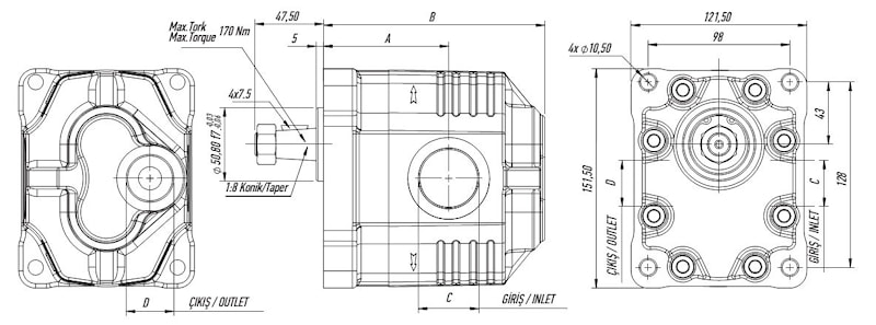 Насосы шестеренные в чугунном корпусе KR-EHASS-L(R) группа 30 4 отверстия фланец K нереверсивный - 30 группа 300 бар, 17-127 см3