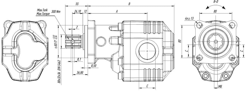 Насосы шестеренные в чугунном корпусе 4 отверстия ISO группа 30 300 бар, 17-127 см3 реверсивный