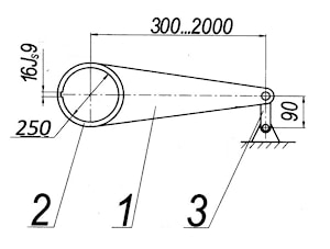 Гидродвигатели устанавливаются непосредственно на приводной вал рабочего органа машины при помощи шлицевого отверстия шестерни поз.1 (рис.1) и одного из шпоночных пазов направляющей поз.2. Второй шпоночный паз выполнен для более удобной ориентации подводных трубопроводов при монтаже. При этом необходимо обеспечить подвижность направляющей гидродвигателя для компенсации плоско-параллельного движения с эксцентриситетом не менее Змм, что достигается установкой рычага поз. 1 (рис.2) связанного с охватывающим кольцом поз.2 (рис. 2) и шарнирно связанного с одним концом поводка поз.З (рис.2), второй конец которого шарнирно закреплен на раме. Внутренний диаметр охватывающего кольца поз.2 должен быть выполнен с зазором не менее 0,1 мм для исключения сдавливания корпуса гидродвигателя в радиальном направлении.