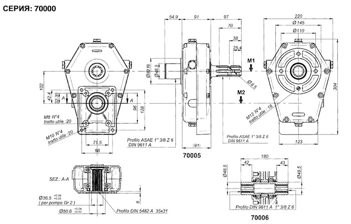 Мультипликаторы со сквозным валом для шестеренных насосов cерия 70000 группа 3, до 20 кВт