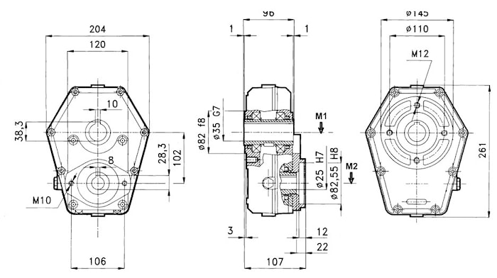 M1 da Nm | M2 da Nm | N. 1 U/ min | N. 2 U/ min | I N.1/N.2 | МОЩНОСТЬ Kw | P Kg |