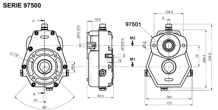 M1 da Nm | M2 da Nm | N. об/мин | N. 2 об/мин | I N.1/N.2 | МОЩНОСТЬ Kw | Масса, Kg |
