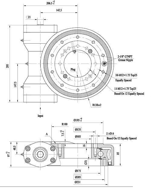 Опорно-поворотное устройство WEA7-47-25H-R-REV представляет собой подшипниковый узел и червячный редуктор в одном корпусе. Позволяет осуществлять поворот механизма гидромотором. Применяется в экскаваторах, кранах, грейдерах и др.