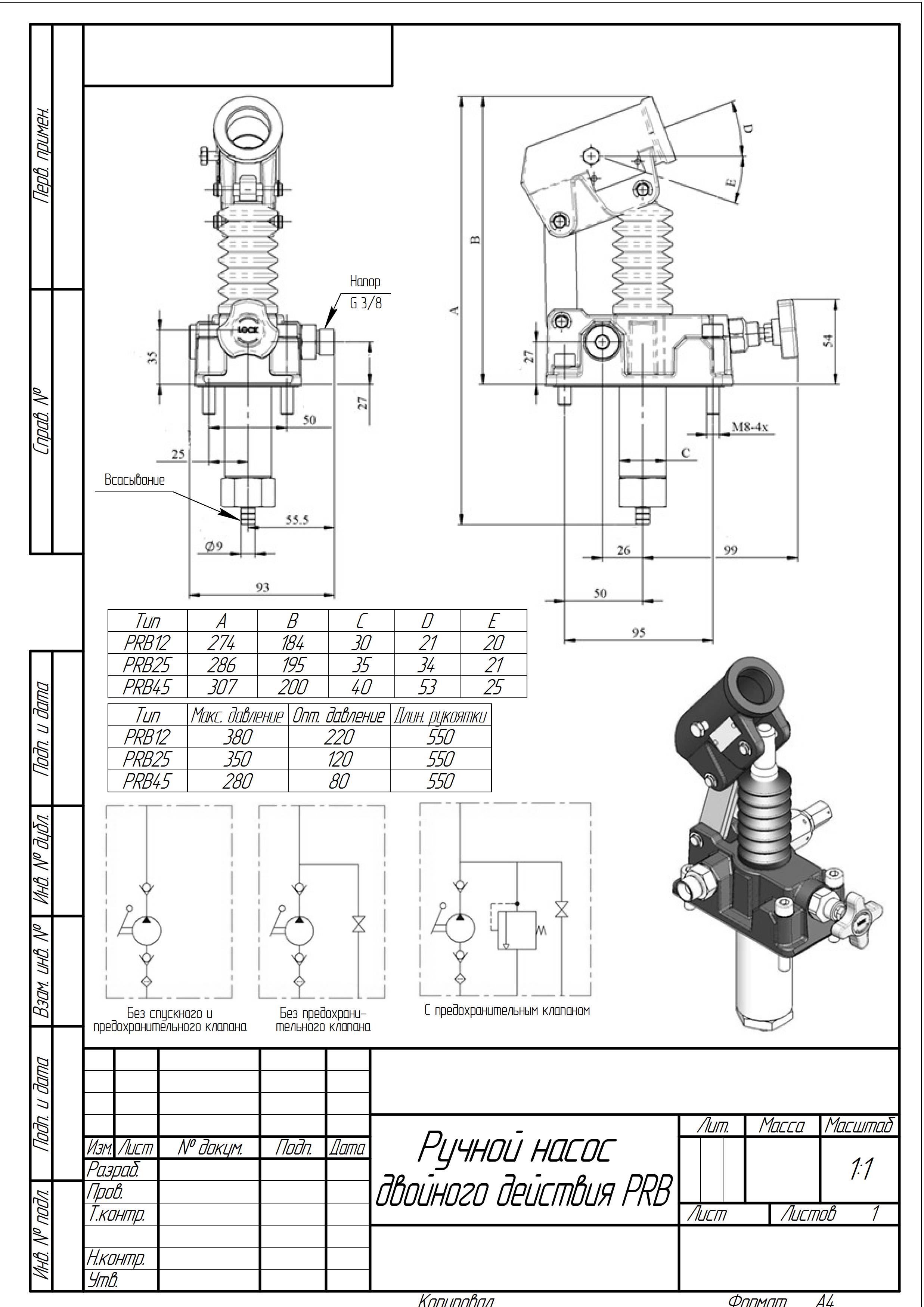 Ручной насос двойного действия PRB 12, 25, 45 см3 для цилиндров одностороннего действия монтаж на бак