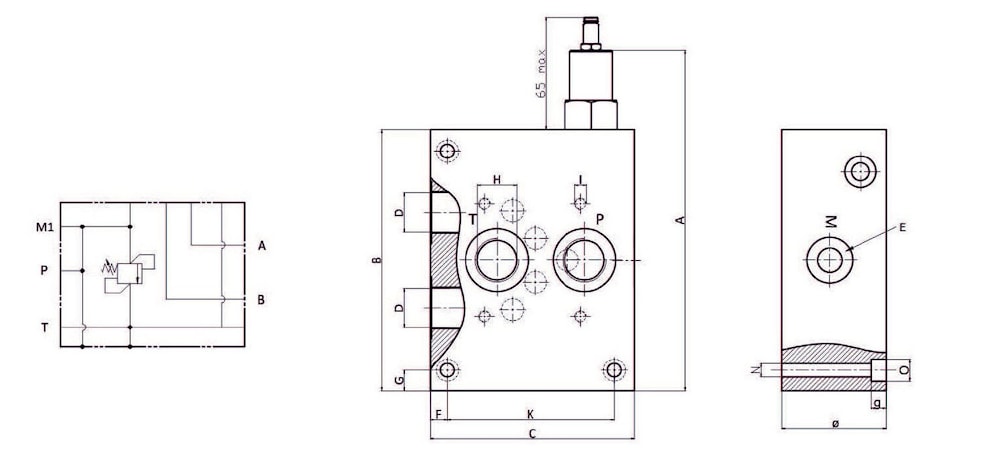 Одноместная монтажная плита с предохранительным клапаном NG10/1-RV 350 бар, алюминий
