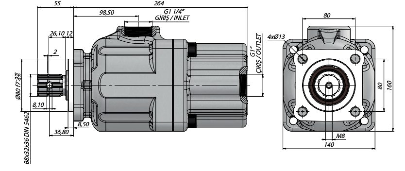 Нерегулируемй аксиально-поршневой насос с наклонным диском серия SELAL ISO, шлицевой вал 10 поршней РЕВЕРСИВНЫЙ300 бар, 60-100 см3