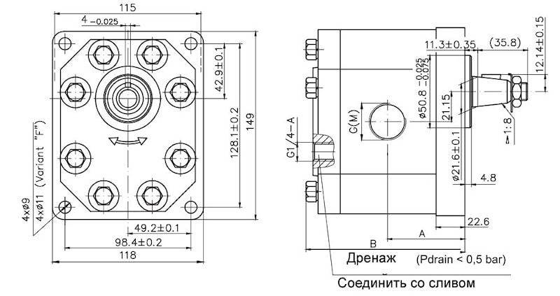 Гидромоторы шестеренные группа 3 (X568) 22-60 cм3, 500-2500 об/мин