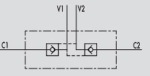 Подключение: Подключите V1 и V2 к напорным линиям, C1 и С2 к полостям цилиндра.