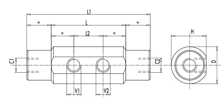 Цилиндрический гидрозамок двустороннего действия VBPDE CYL 350 бар, до 45 л/мин двусторонний