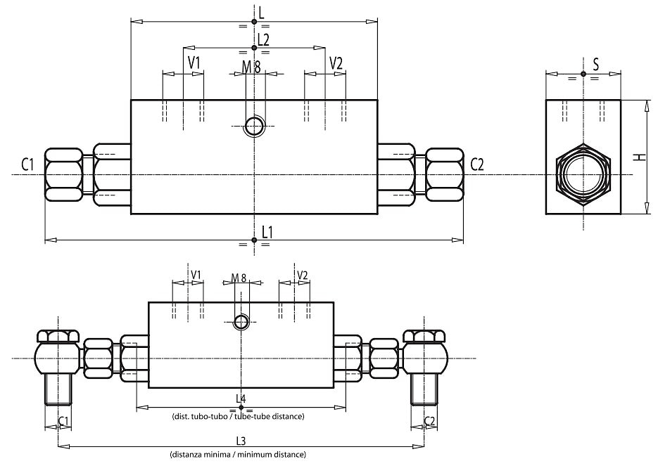 Гидрозамок двустороннего действия VBPDE 2 СС с трубными фитингами 12 мм (DIN2353) 350 бар, до 50 л/мин двусторонний