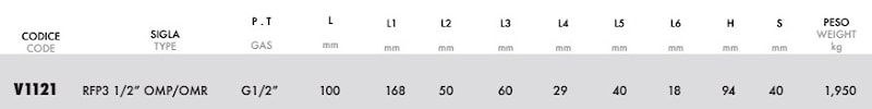 | V1110/VU | RFP3 1/2" OMP/OMR | 60 | 50 | 350 |