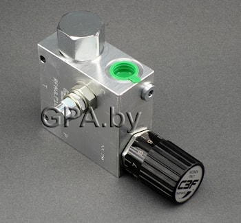 Трехлинейный регулятор потока RFP3 OMP/OMR предназначен для поддержания постоянного потока в линии потребителя "P" и свободного слива избыточного потока в канал "T".