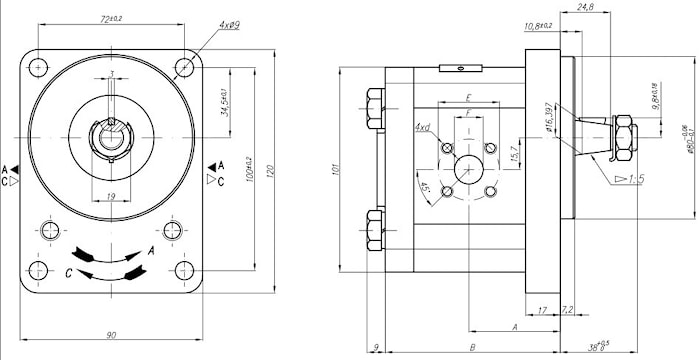 Насосы шестеренные серии X086 с коническим валом 1:5 4.5-25 см3 250 бар