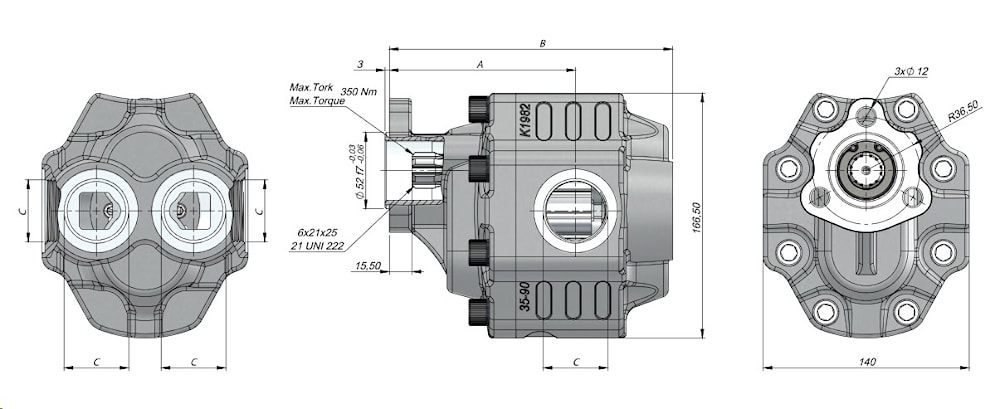 Насосы шестеренные в чугунном корпусе 3 отверстия UNI группа 35 290 бар, 60-110 см3 реверсивный