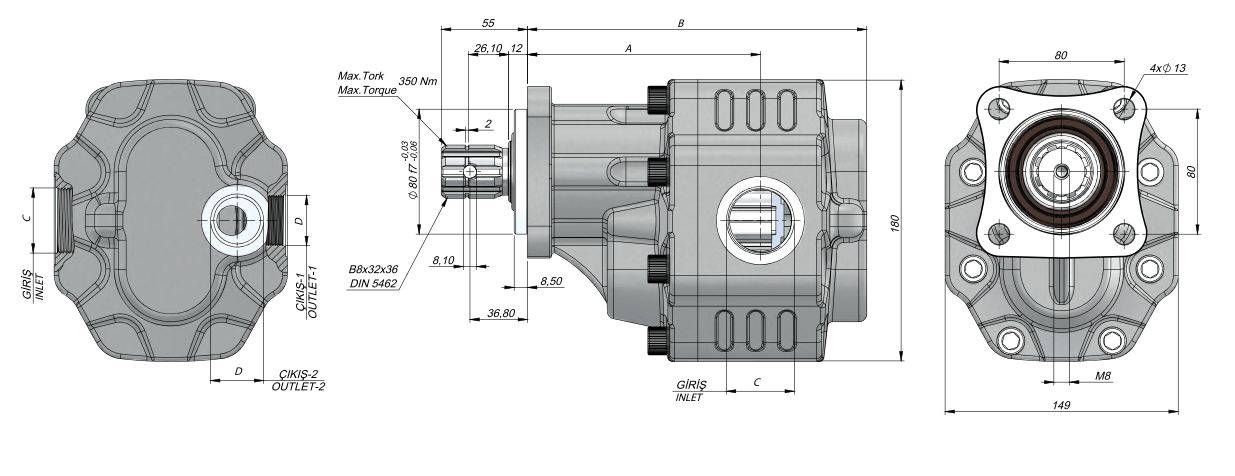 Насосы шестеренные в чугунном корпусе 4 отверстия ISO группа 40 280 бар, 63-151 см3 нереверсивный