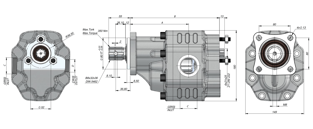 | ISO GANI TANDEM 73 | 73 | 275 | 300 | 320 | 1800 | 2800 | 300 | 30 | 106 | G1 1/4" | G3/4" |