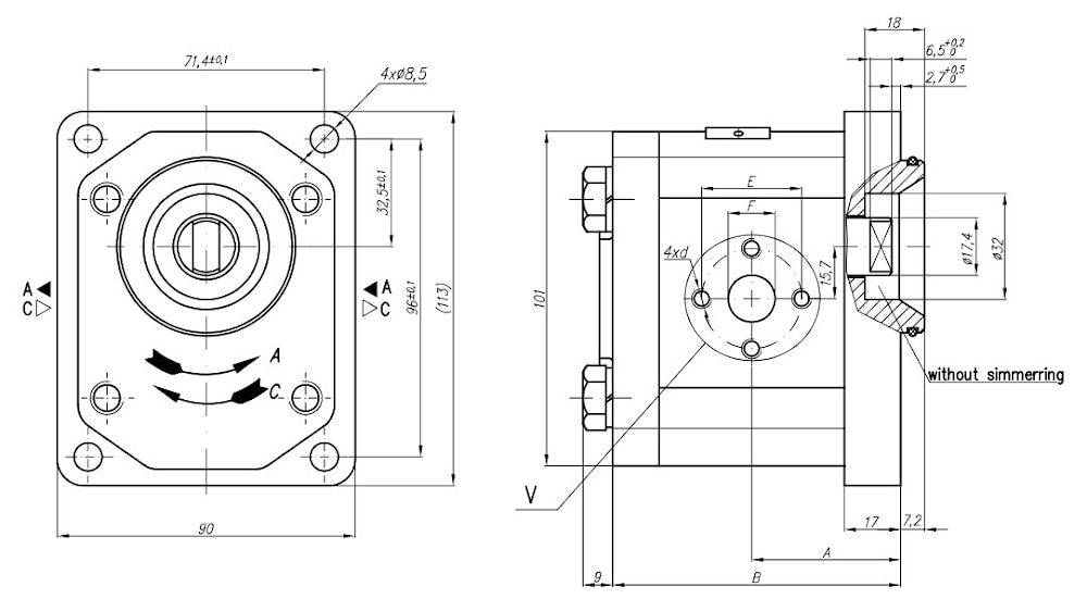cm3/rev | l/min | l/min | bar | rpm | mm | mm | E | F | d | E | F | d | |