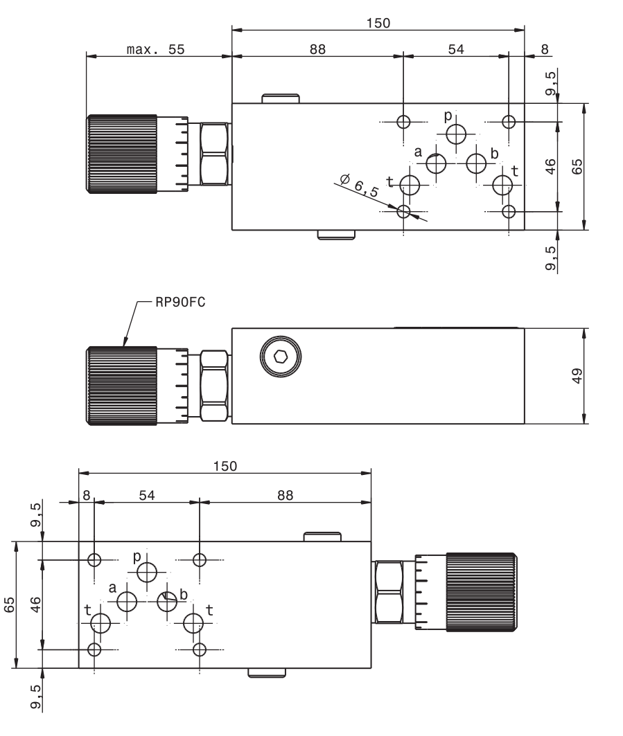 Трехлинейный регулятор расхода модульный RFP90 90 л/мин 300 бар Ду10 алюминиевый корпус