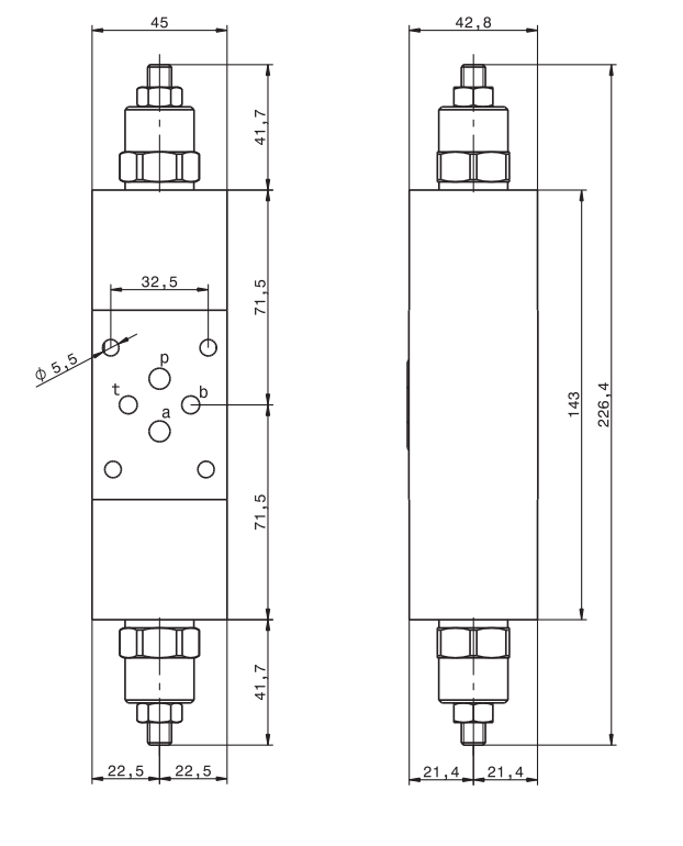 Тормозной клапан двусторонний OVC-DE-F-C3 35 л/мин 350 бар Ду6 алюминиевый корпус