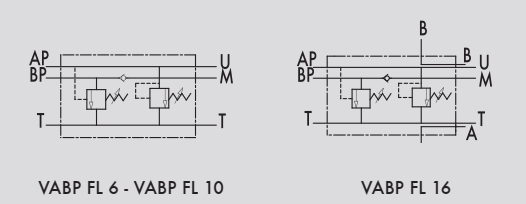 Клапан давления "высокое-низкое" для модульного монтажа Ду6, Ду10, Ду16 тип VABP FL 350 бар, до 120 л/мин 3/8", 1/2", 3/4" NG6, NG10, NG16