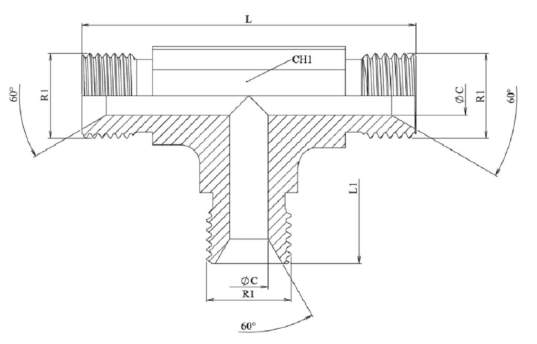 Т-образное BSP резьбовое соединение метрическая наруж. 24°