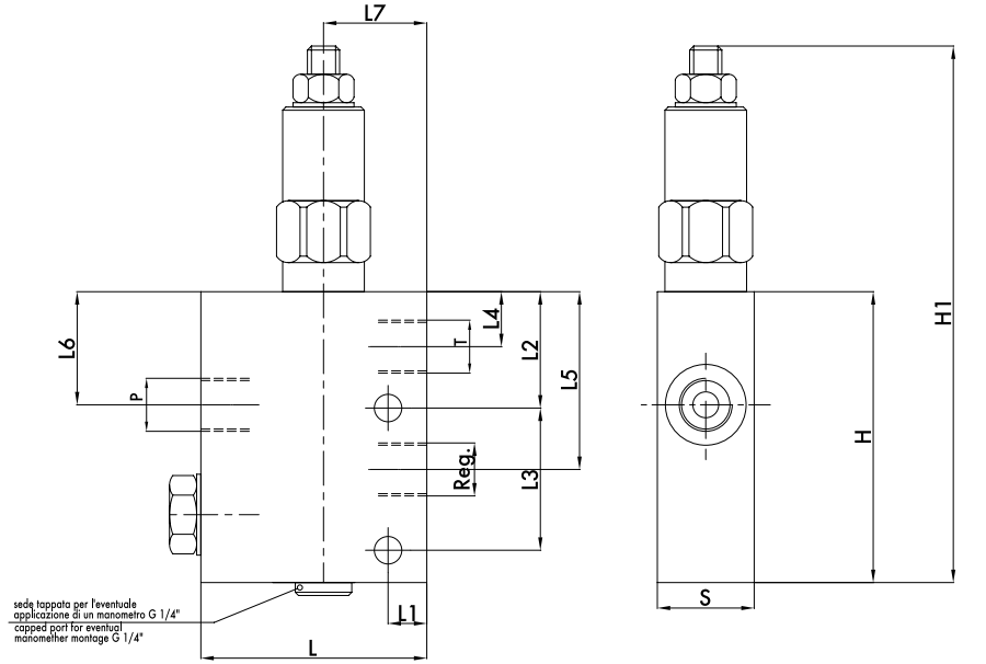| КОД | ТИП | P - T - Reg | L | L1 | L2 | L3 | L4 | L5 | L6 | L7 | H | H1 | S | Масса |