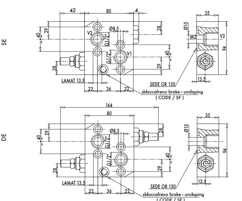 Клапан контролирует давление в одной (модель "SE") или в двух ("DE") линиях подключения гидромотора.