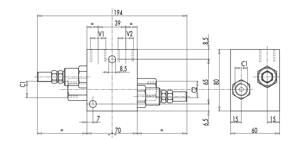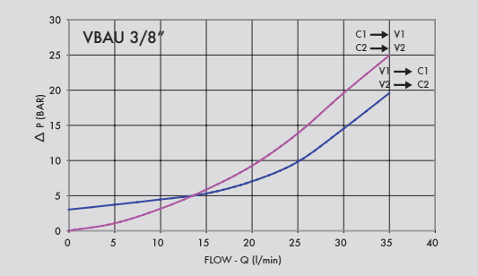 Перекрестный предохранительный клапан с гидрозамком тип VBAU 350 бар, 35 л/мин
