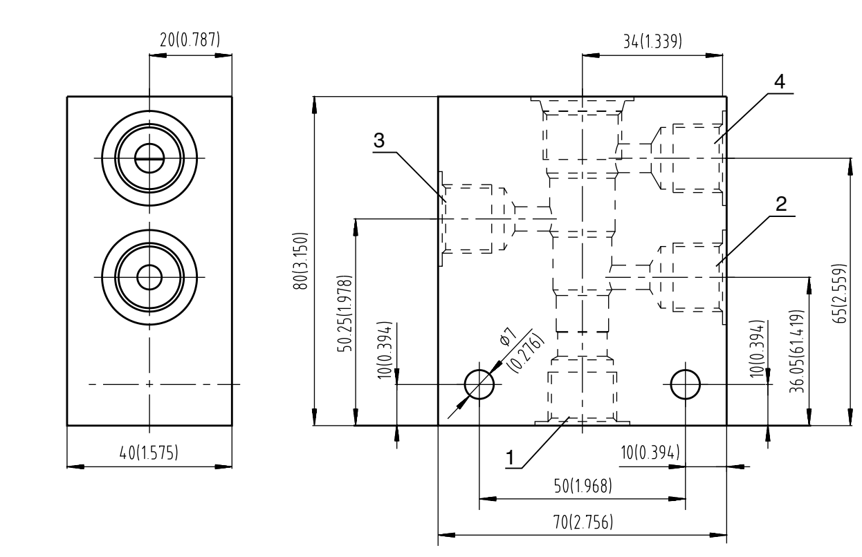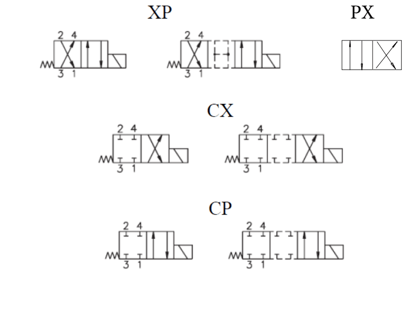 (1) EV4 : 4-четырехлинейный золотниковый двухпозиционный гидроклапан