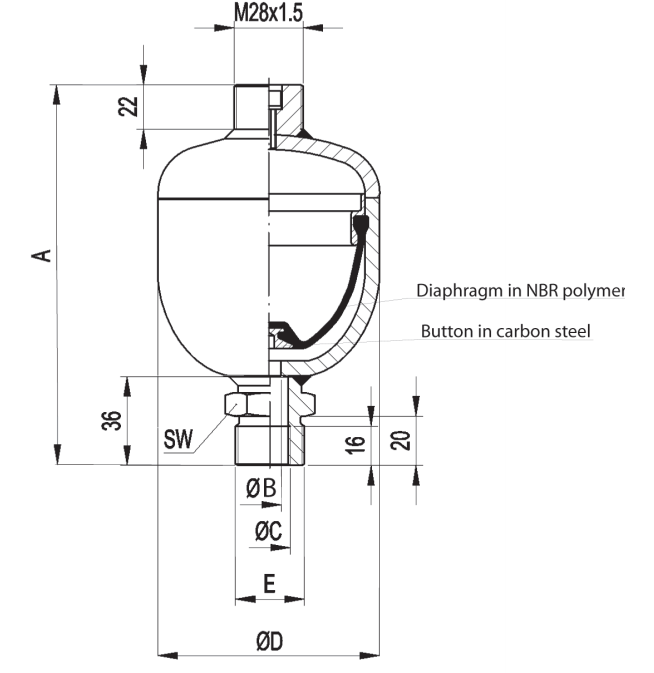 Пневмогидроаккумулятор с мембраной, сварной (неразборный) AMS 0,15-3,5 литров 250 бар