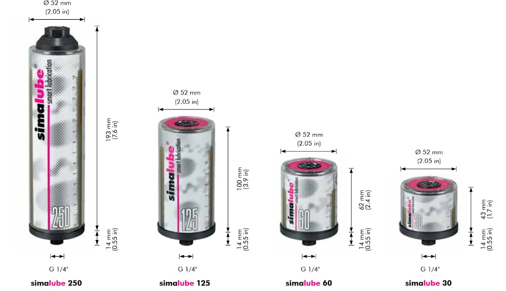 Лубрикаторы simalube можно использовать для смазки любых подшипников, цепей, открытых шестерен, направляющих, шпинделей и многого другого.