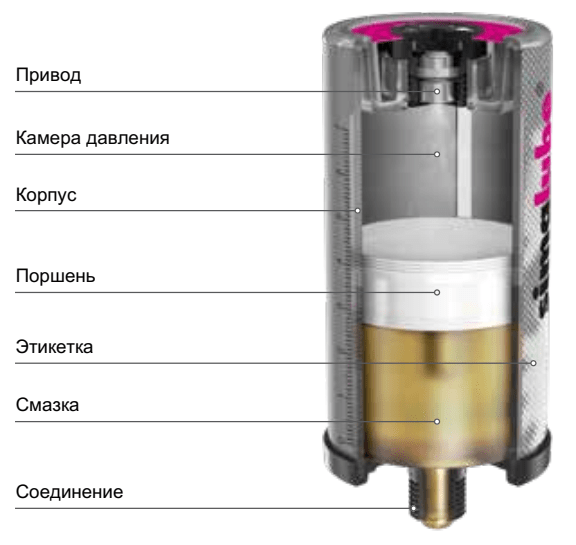 Автоматический дозатор масла и консистентной смазки длительного срока действия (лубрикатор) 15, 30, 60, 125 и 250 мл.