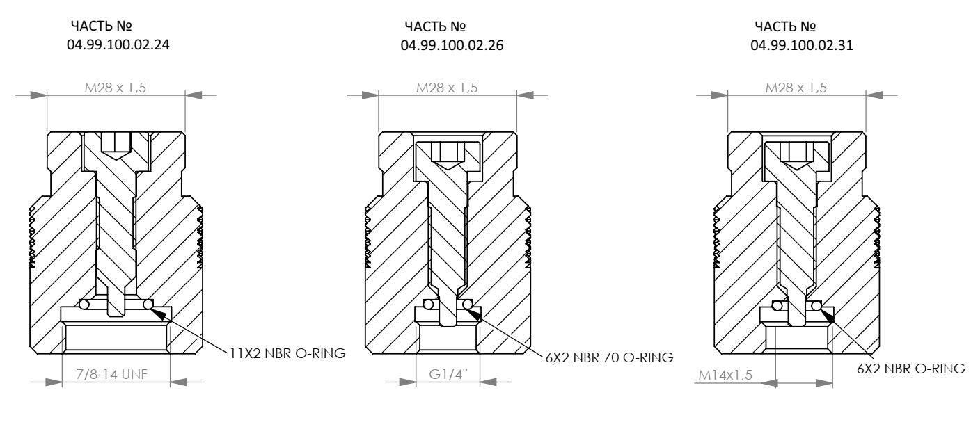 M28 х 1.5 • UNF 5/8"-18 • UNF 5/16"-24 • UNF7/8"-14 • G1/4" • М14 х 1,5