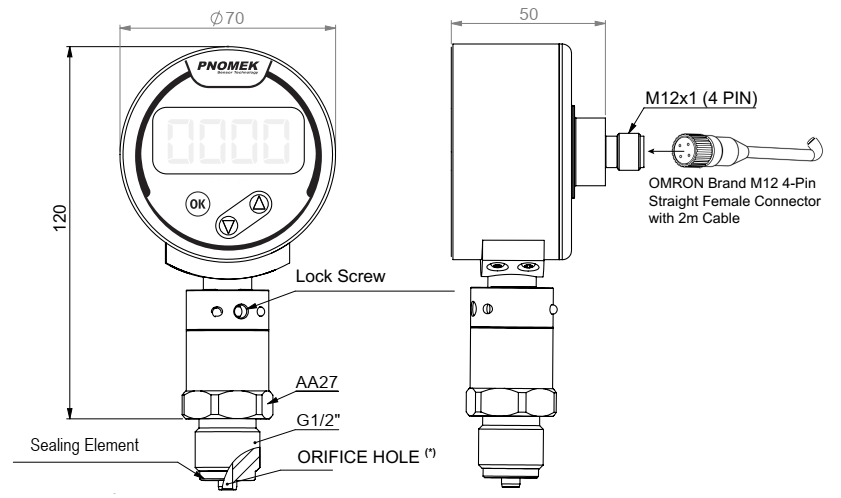 | Модель | Материал уплотнений | Присоединение | Тип коннектора | Давление | Выходной сигнал | Аналоговый Выходной сигнал (опция) | Точность | ||