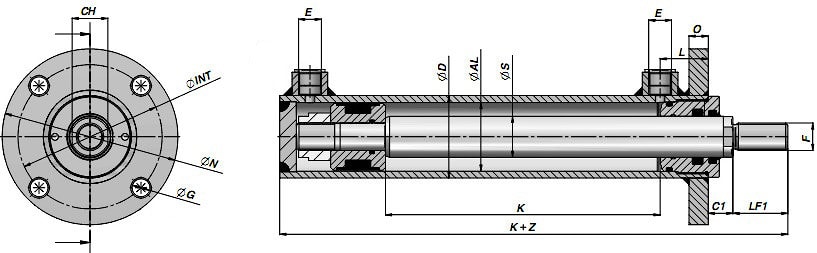 Гидроцилиндры серии HMFS это стандартный ряд цилиндров которые мы можем изготавливать наиболее быстро и дешево. Согласование чертежа не требуется, размеры полностью соответствуют указанным ниже.