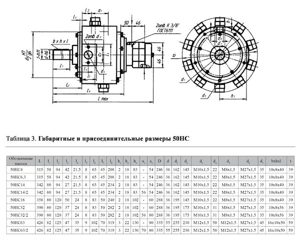 | 50Н | Насос на номинальное давление 50 МПа | |||||||