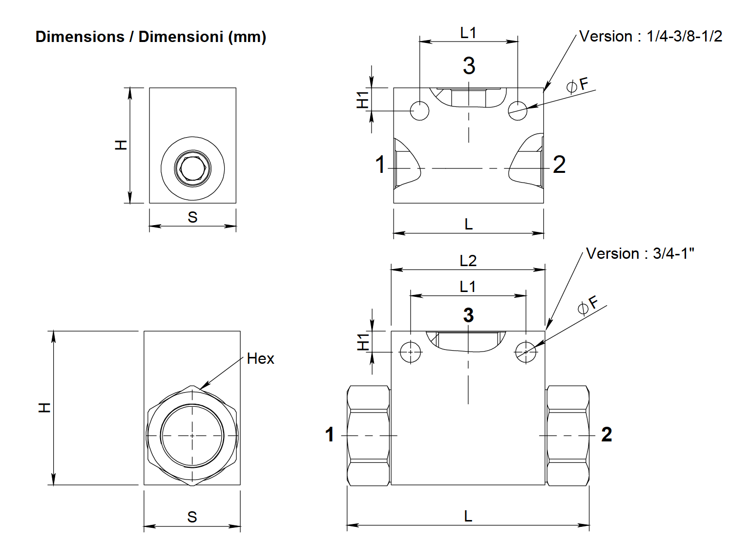 | SHV-M 1/4" GAS | 1/4 | 52 | 34 | / | 40 | 8 | 30 | / | 6.5 | 0.30 | 20 |