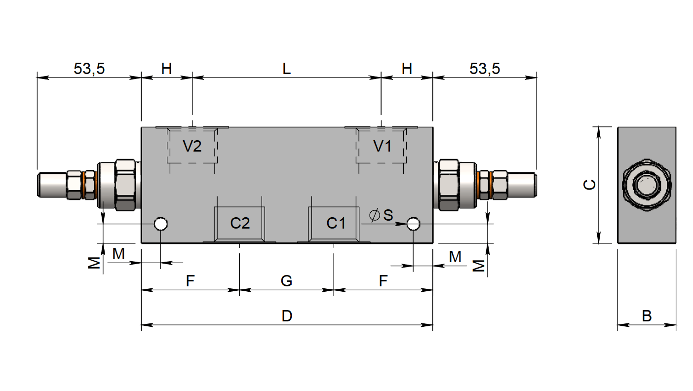 | Код стандарта | Резьба | B | C | D | F | G | H | L | M | OS | Вес (кг) - Сплав | Вес (кг) - Сталь | Макс. поток (л/мин) | Отношение пилота |