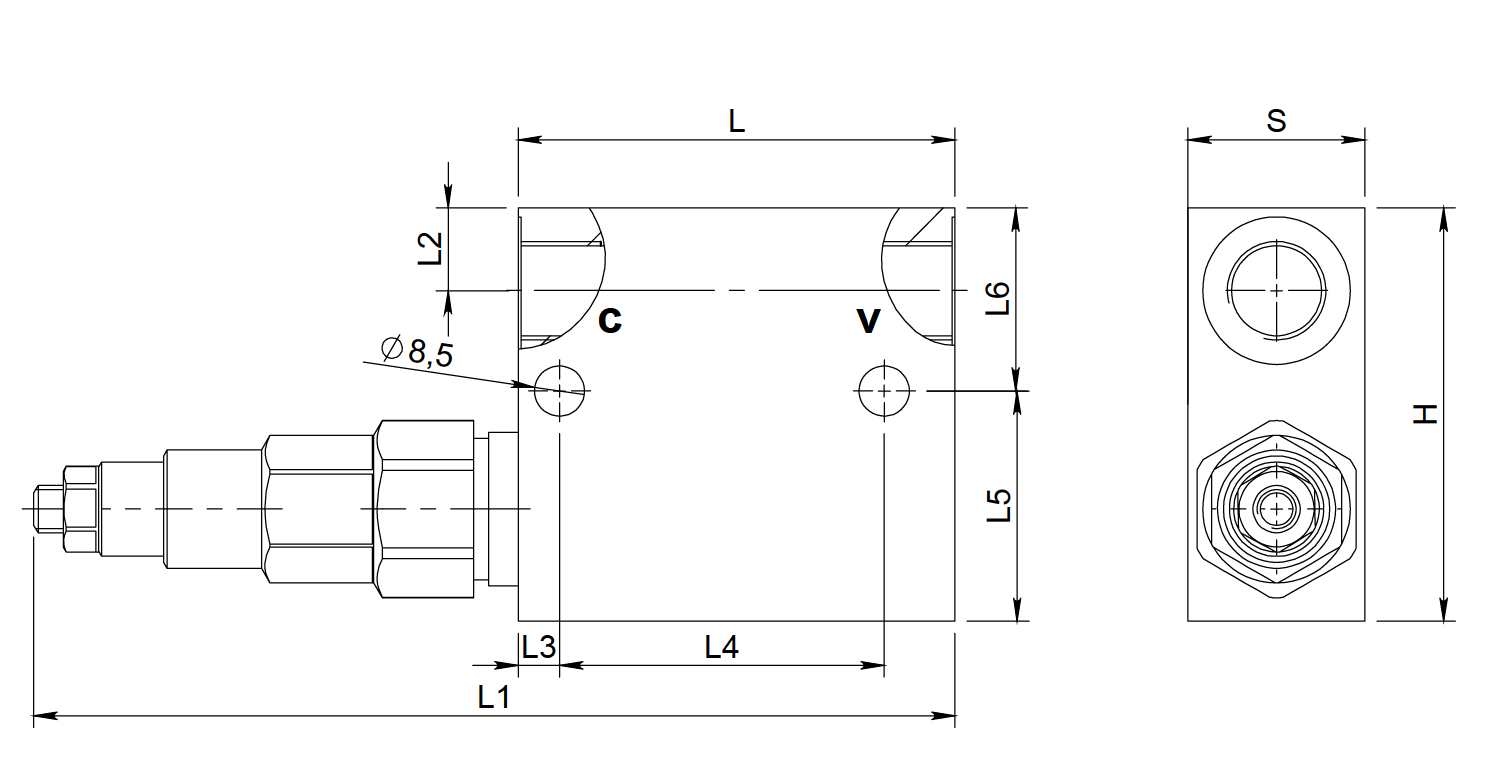 | Код стандарта | Резьба | L | L1 | L2 | L3 | L4 | L5 | L6 | H | S | Макс. давление (бар) | Вес (кг) | Макс. поток (л/мин) |