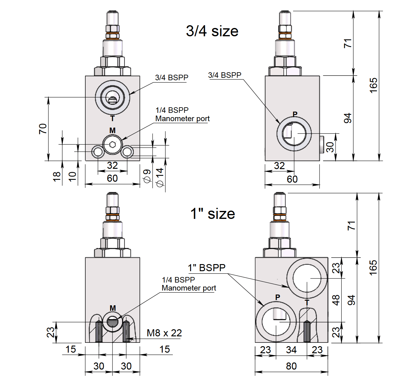 Клапан имеет широкий диапазон регулировки, высокую пропускную способность и низкую чувствительность к изменению потока. По сравнению с предохранительным клапаном имеющим прямое управление (например RVD-M-SC) имеем меньшую скорость срабатывания. Клапан имеет дополнительный порт для контроля давления.