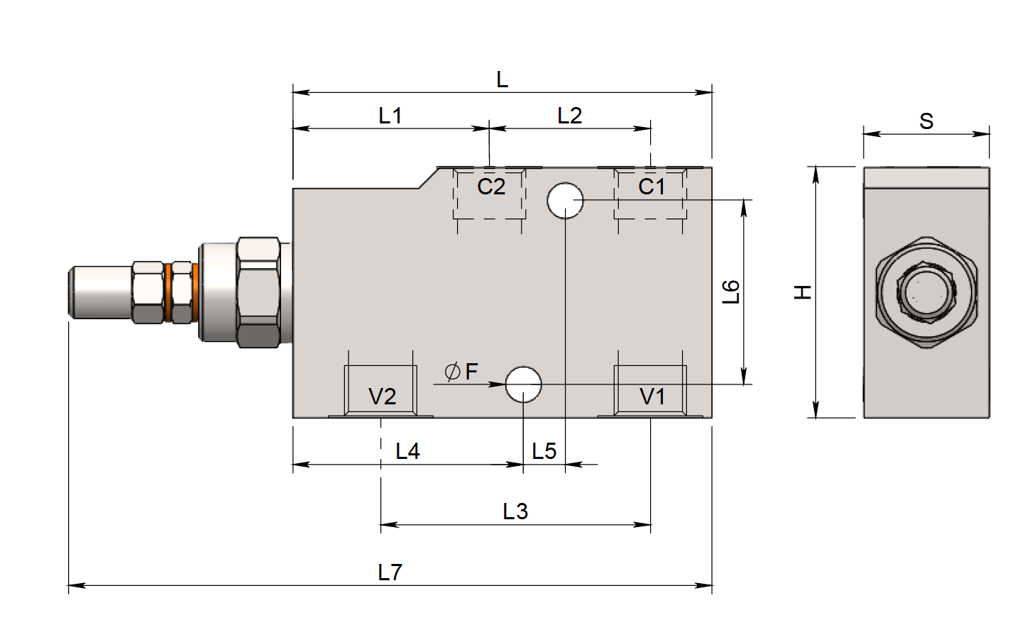 | Код стандарта | Резьба | L | L1 | L2 | L3 | L4 | L5 | L6 | L7 | H | S | 0F | Вес (кг) | Макс. поток (л/мин) | Соотношение пилота |