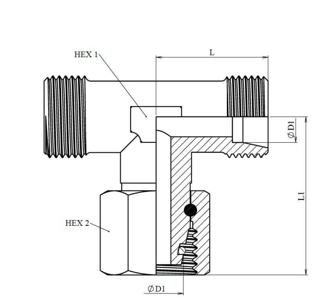 Т-образное резьбовое регулируемое соединение метрическая наруж. 24°, метрическая внутр