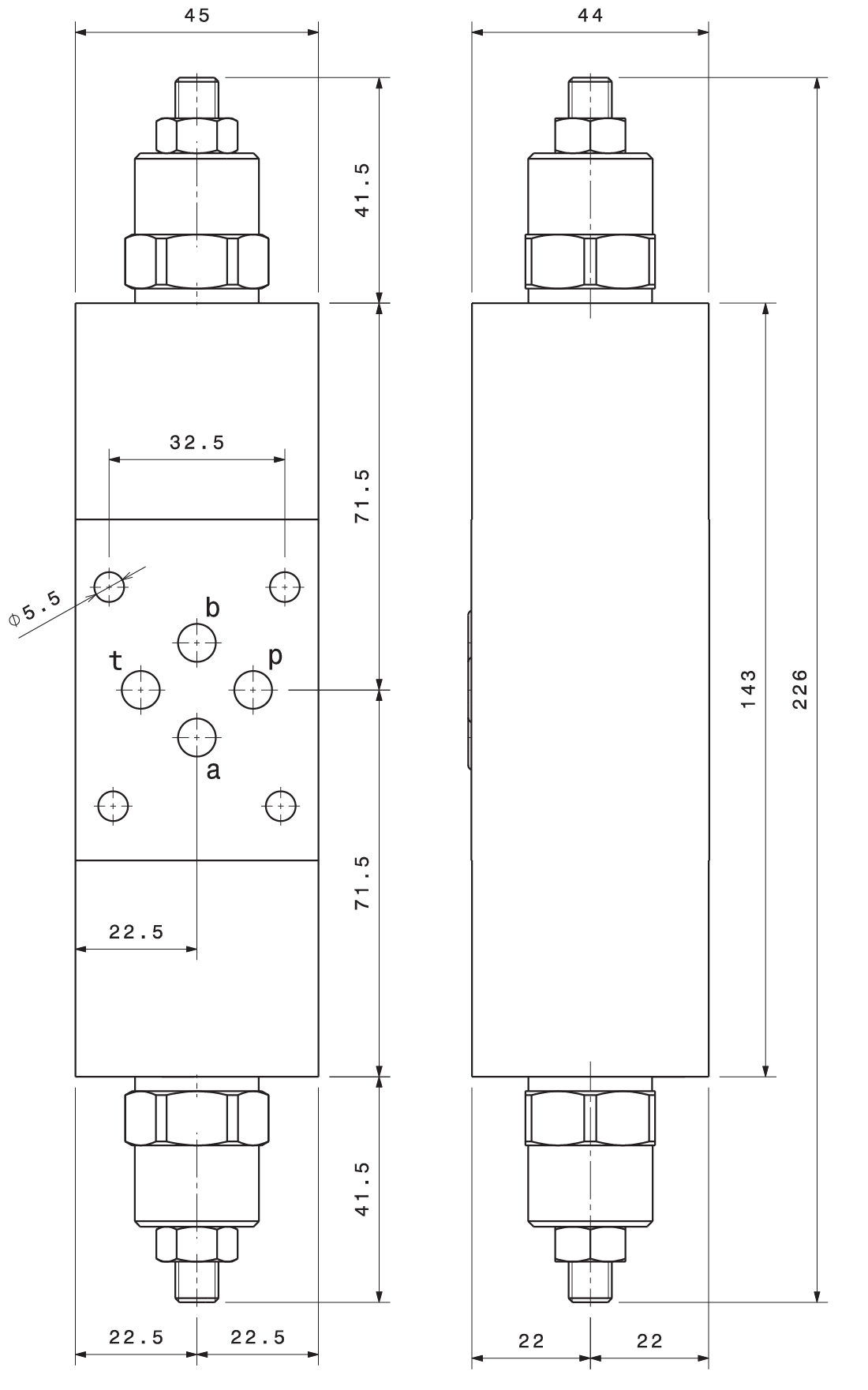 Клапан контрбаланса двойного действия типа OVC-DE-F-C3 350 бар, до 35 л/мин