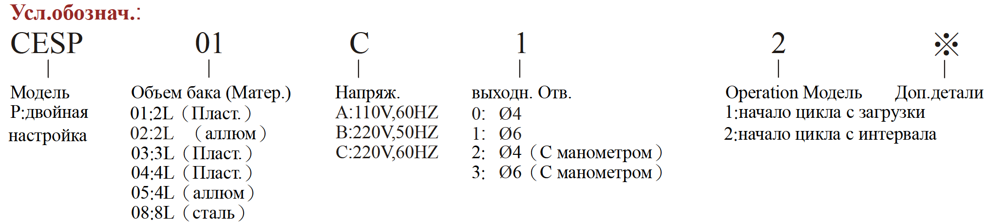 | Время включения | Интервал | Мощность двигателя (Вт) | Максимальная подача | Максимальное давление | Напряжение (В) | Ток (А) | Частота (Гц) | Выходное отверстие | Манометр | Вязкость |