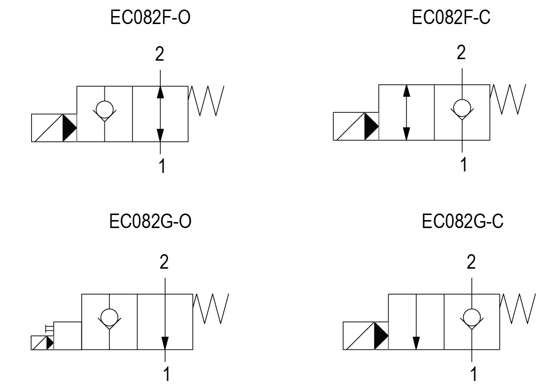 | 01 | Клапаны с электрическим управлением SAE8 2-х линейные/2-х позиционные с пилотным управлением | EC082- |