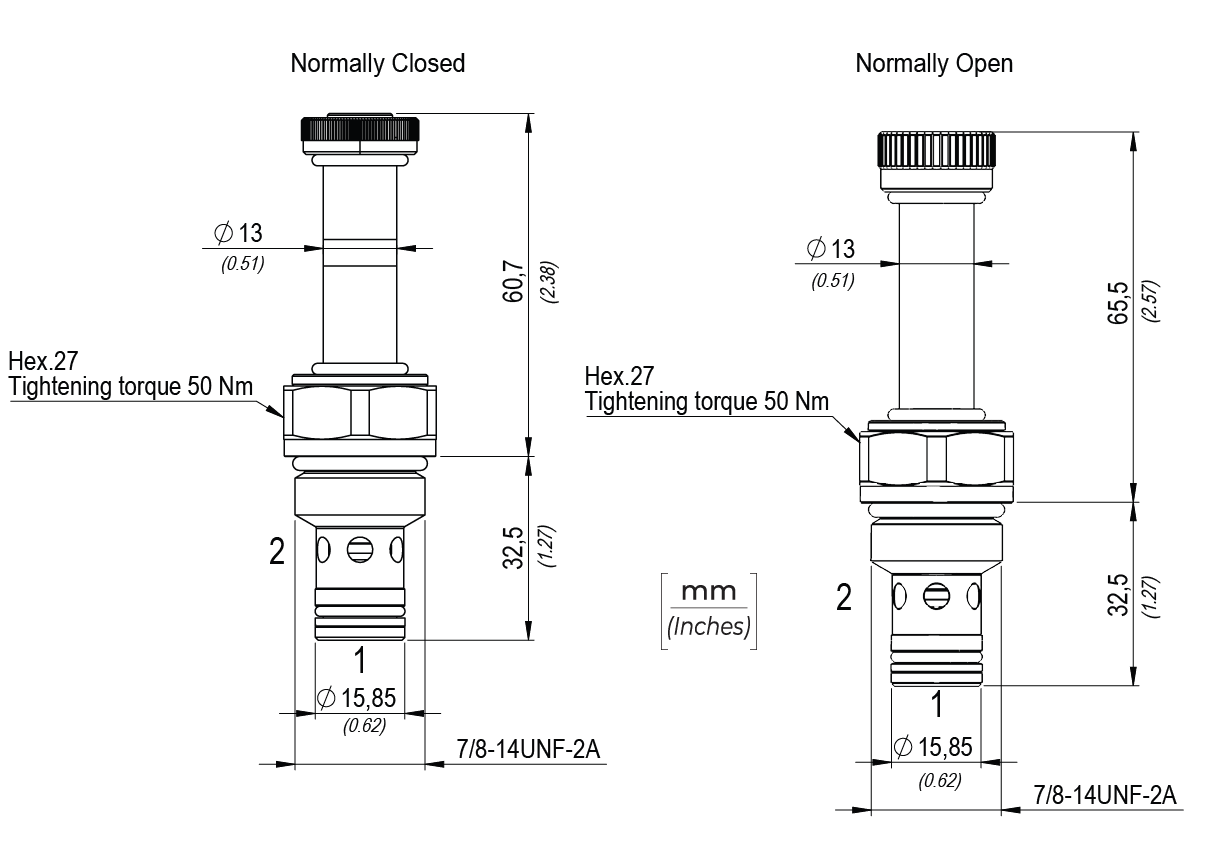 Гидроклапан двухлинейный ввертный электроуправляемый ED102F 7/8 UNF 70 л/мин, 350 бар