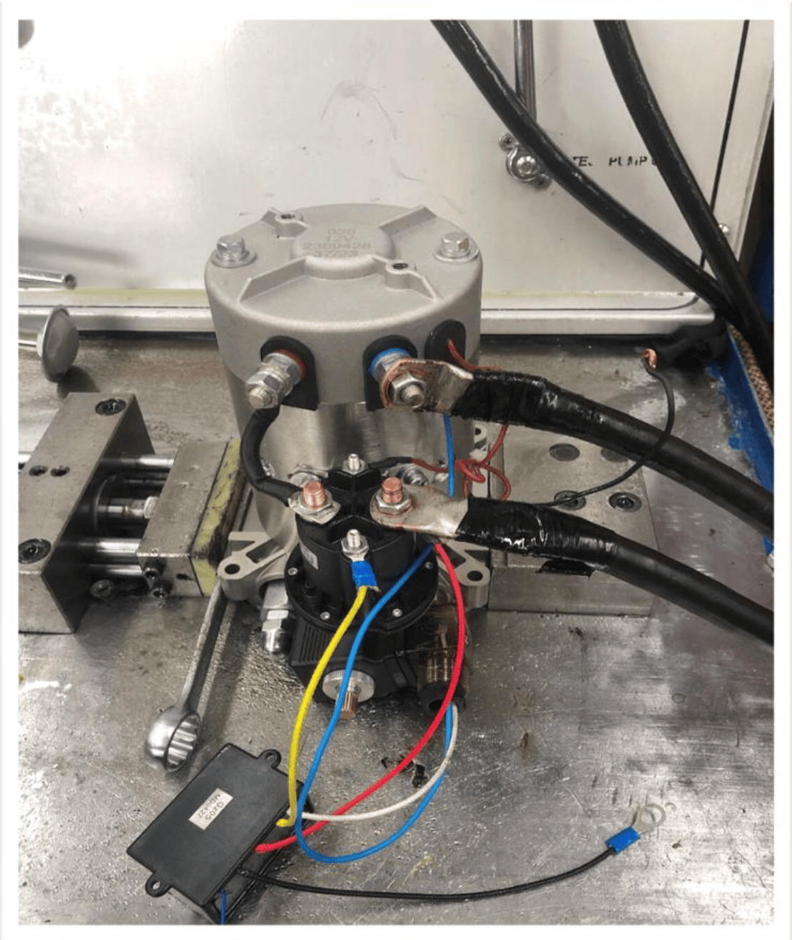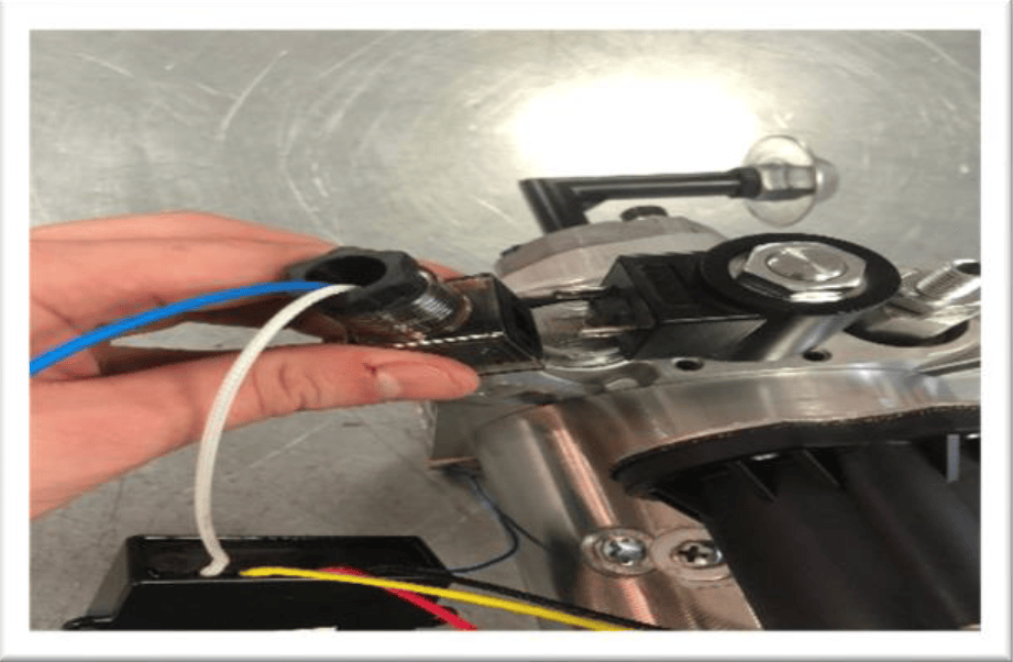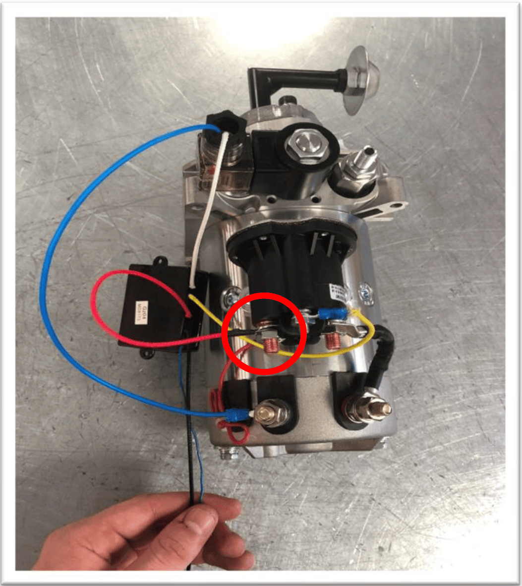 | 3 | Подключите синий кабель, подключенный к разъему, к отрицательному (-) полюсу двигателя. | ![]() |