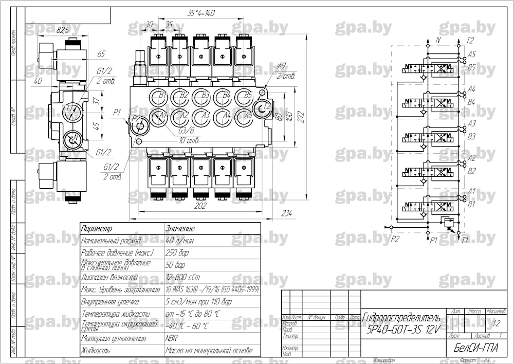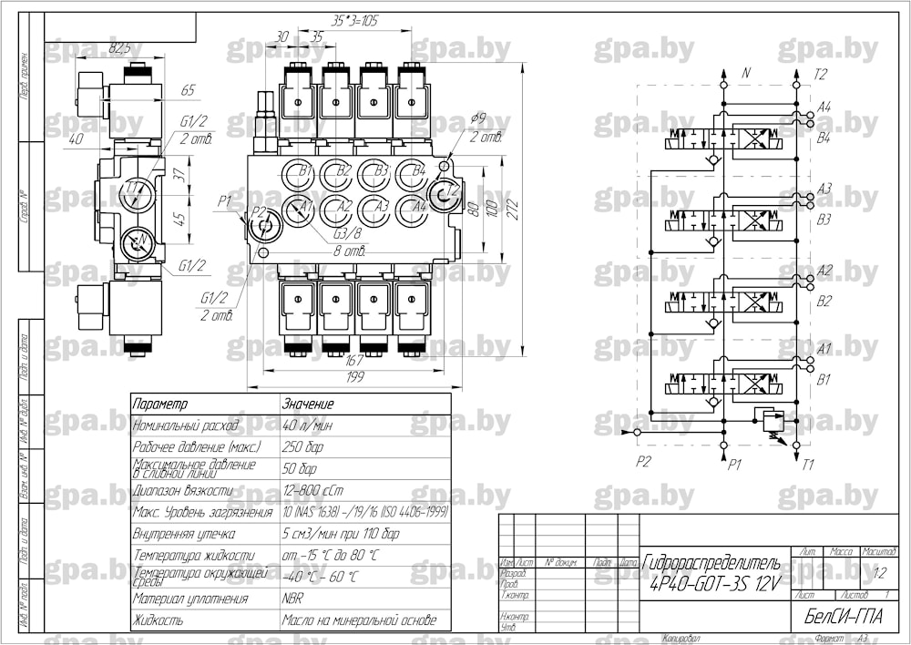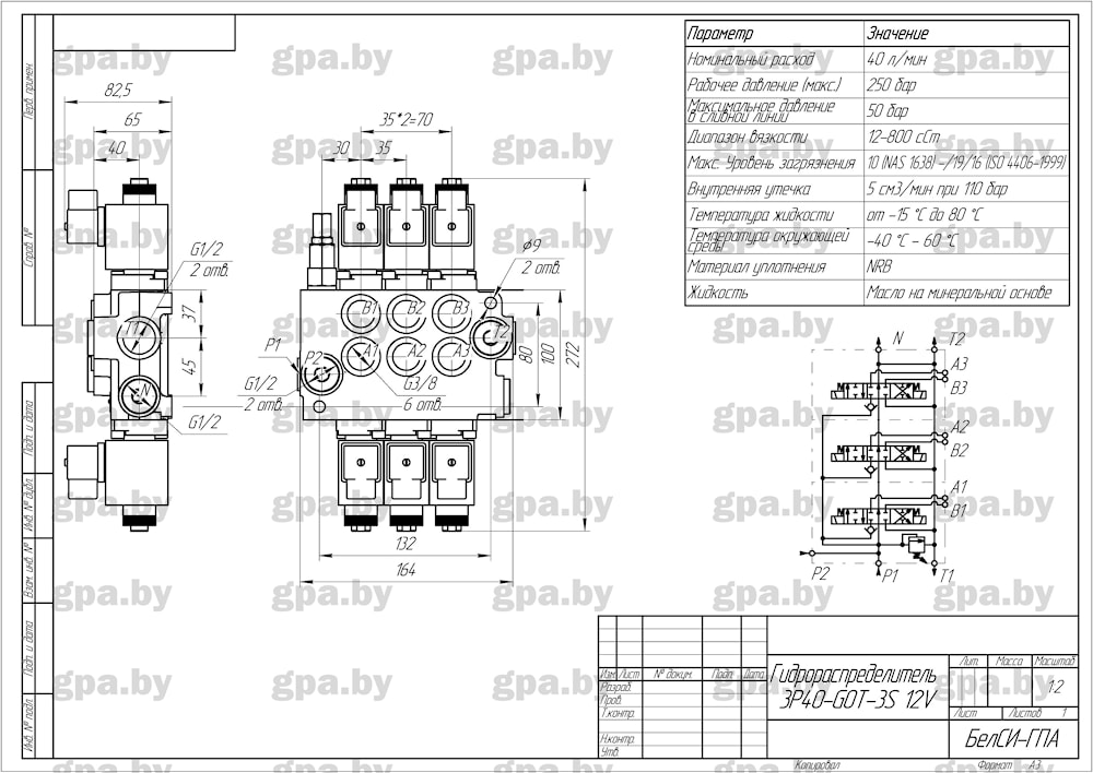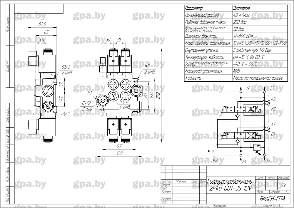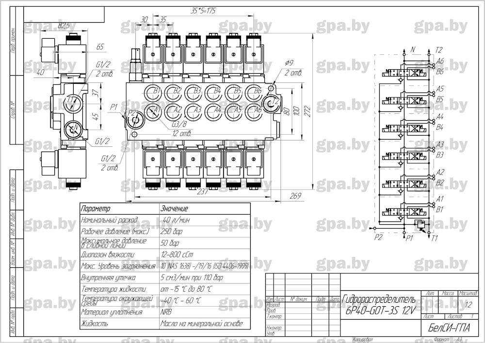 Гидрораспределители моноблочные с электроуправлением P40 (Китай) 250 бар, 40 л/мин 1-6 золотников