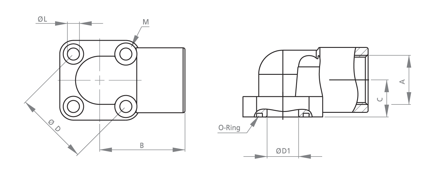 Угловые фланцевые адаптеры для шестеренных насосов серии DRA 4    BSP