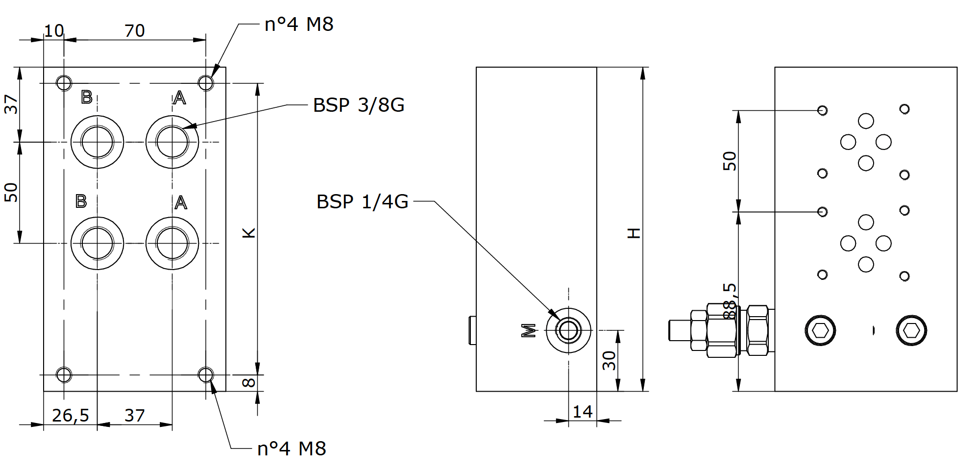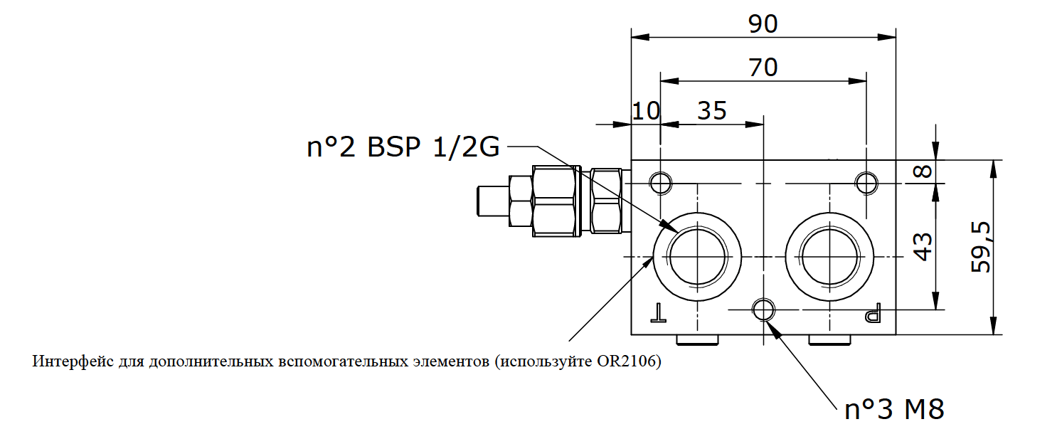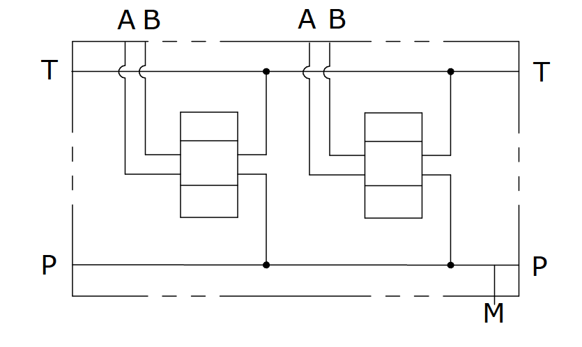 Монтажная плита для группового монтажа гидроаппаратуры со стыковой поверхностью NG6/CETOP3 и опциональным предохранительным клапаном.